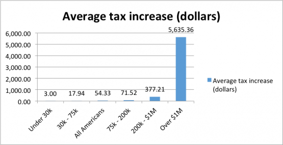 Bartlett points to one table from the JCT report which shows that including the corporate tax in its calculations changes the estimates of the taxes paid by different income classes, and because the numbers are large at the bottom he claims that “much of the burden” of an increase in the corporate tax falls on the poor. But this is a misleading measure of the effect of corporate taxes. Because the very poor pay relatively little in federal taxes, even tiny tax increases look big as a share of taxes paid. And it turns out that these tax changes are, in fact, tiny. Later in the report, the JCT actually models the impact of a $10 billion per year increase in the corporate tax on taxpayers at different income levels. It finds that an increase in the corporate tax raises much, much more from high-income taxpayers on aggregate than from low-income taxpayers. The results are even more dramatic if you use JCT’s tables to calculate the average tax change per family. According to my calculations using JCT’s numbers, a $10 billion per year increase in corporate taxes would raise taxes on the average family making $30,000 or less by about $3 per year. By contrast, the same policy would raise an extra $5,635, on average, from people making more than $1 million per year. The reverse is also true: A $10 billion cut in the corporate tax would give a benefit of about $3 per family to the 57 million households living on $30,000 or less, while putting an average of $5,635 in the pocket of the 0.23 percent of households fortunate enough to earn a million dollars a year.