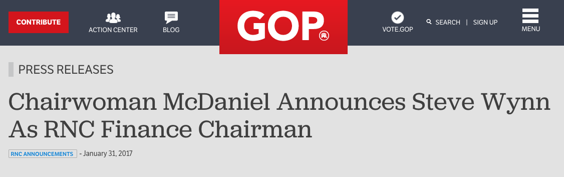 Since 2012, Wynn has also given $2.5 million to the Republican Governors Association, $411,000 to the National Republican Senate Committee, $248,000 to the Republican National Committee and $100,000 to the National Republican Campaign Committee.